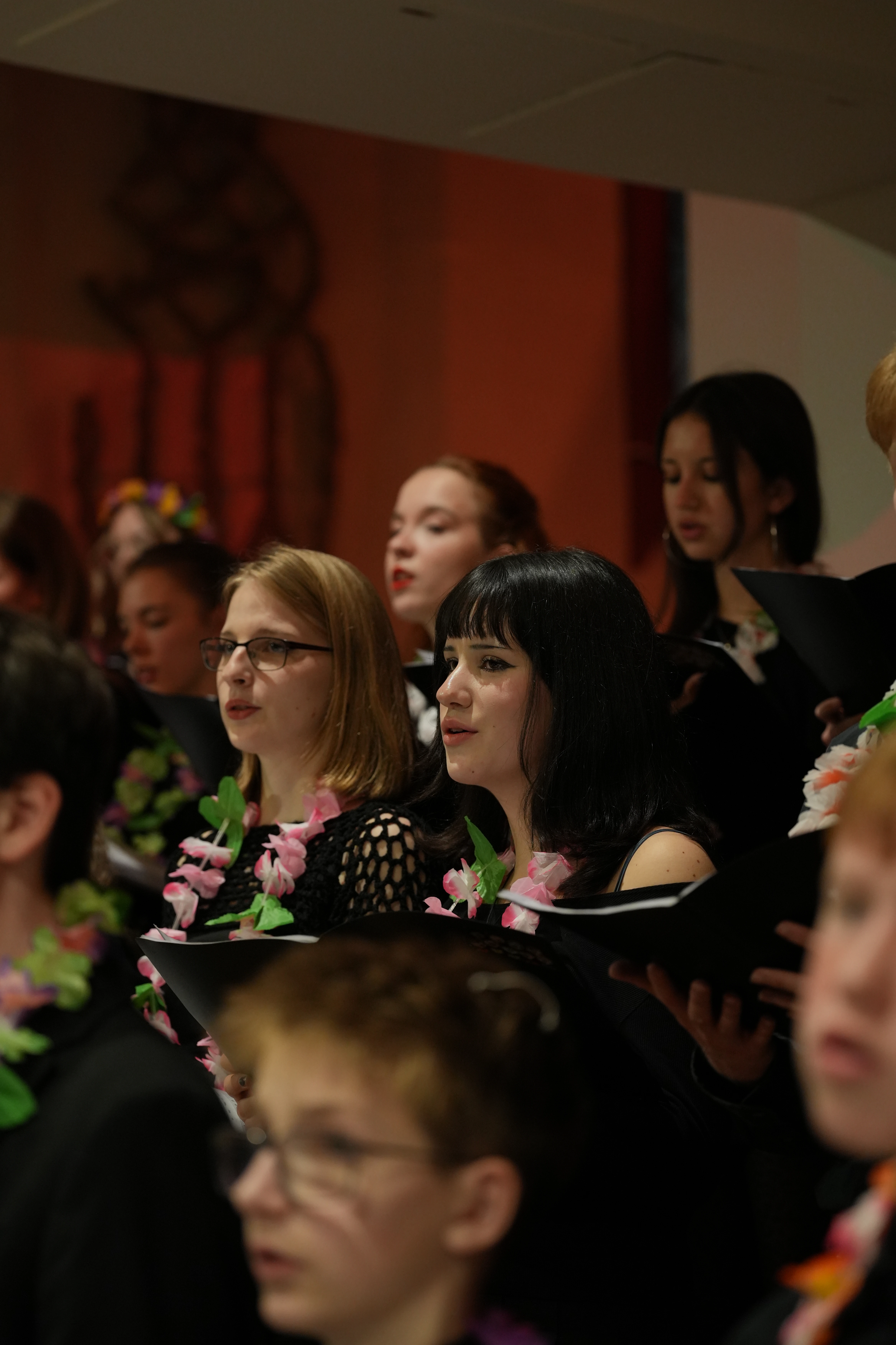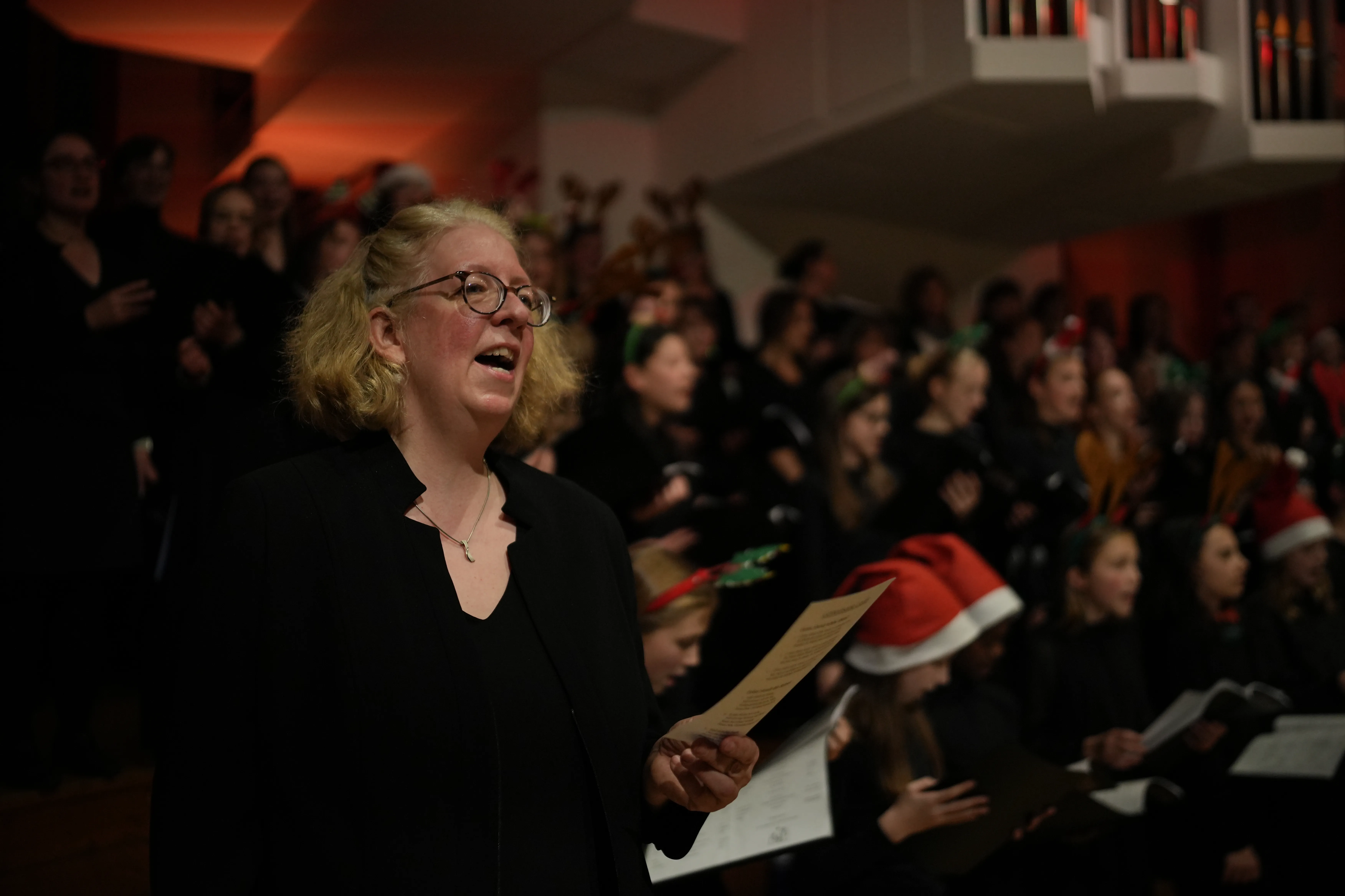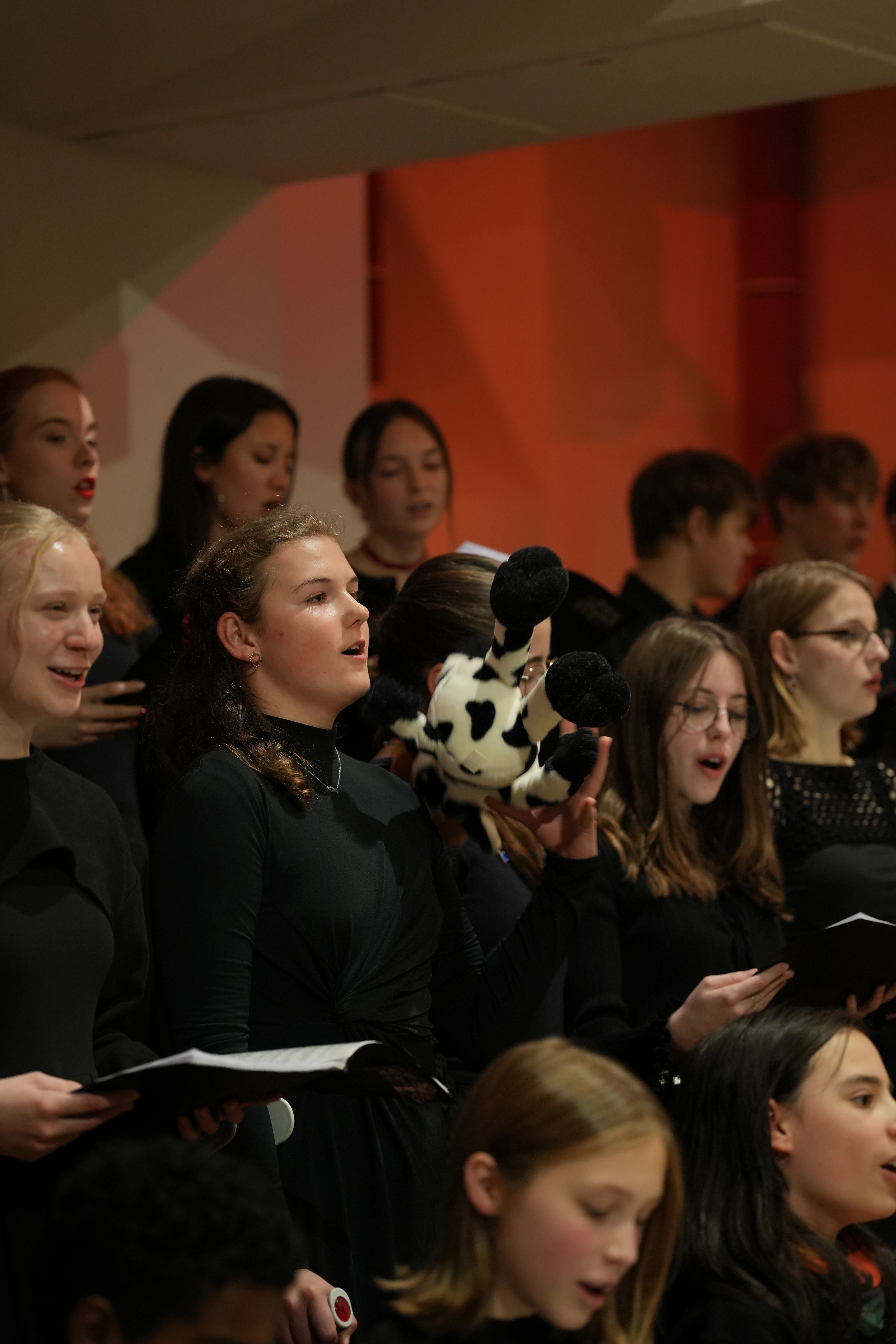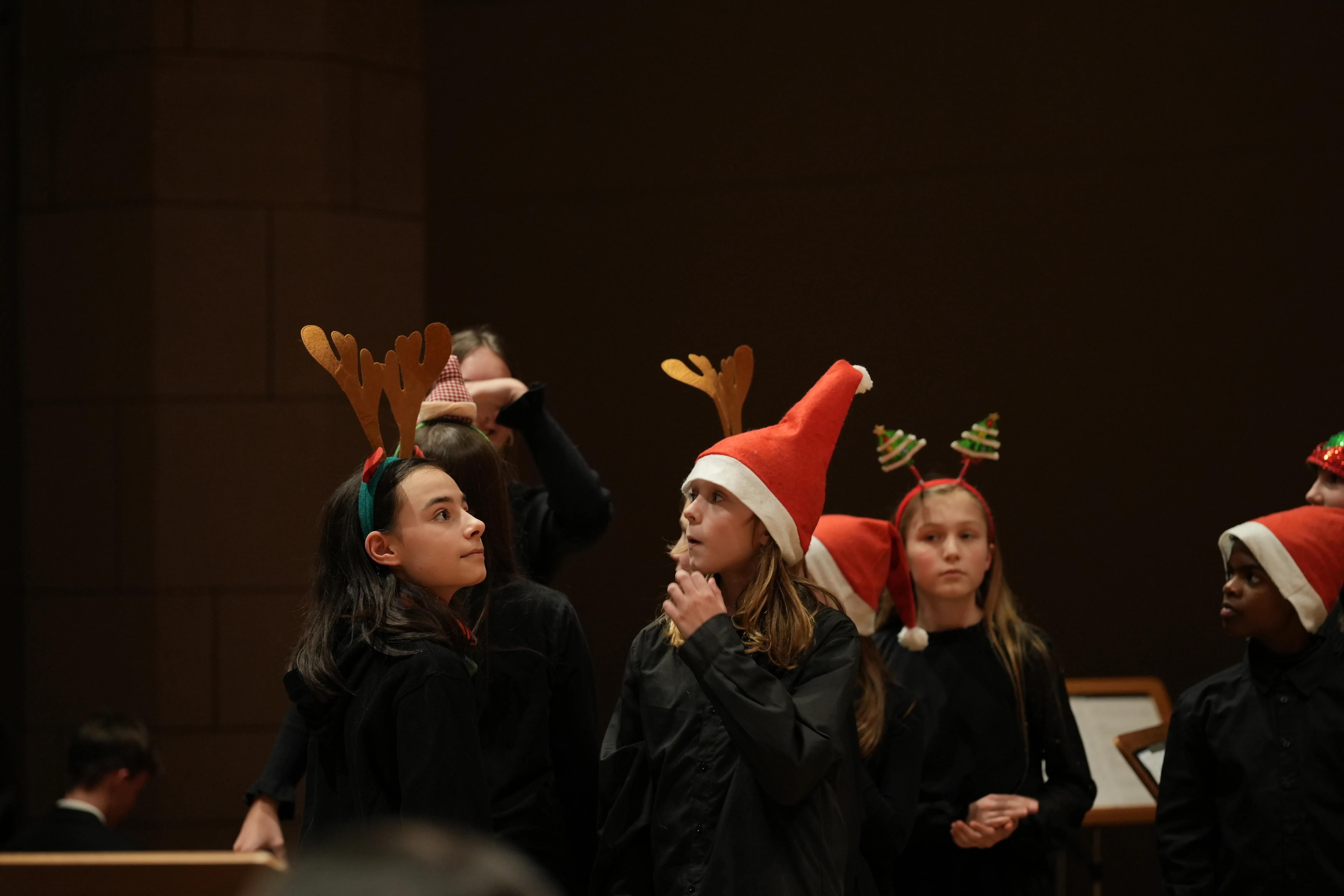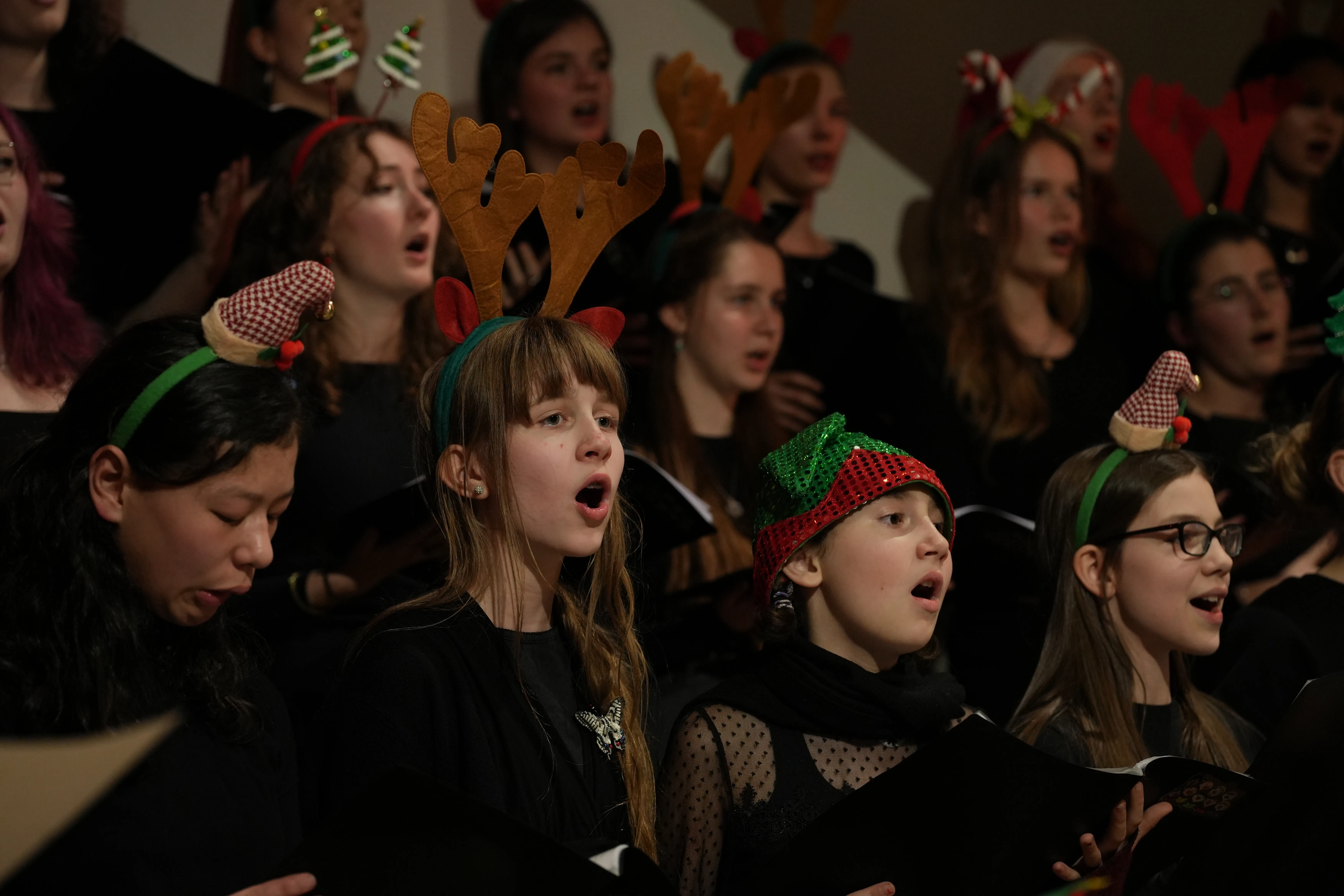 Der Chor eröffnete den Abend mit dem Lied Evening Rise. Es folgten Weihnachtsklassiker wie White Chrismas, Run Run Rudolph und Feliz Navidad. Auch die Filmmusik war mit You’re A Mean One Mr. Grinch vertreten. Mit dem Publikum gemeinsam wurde z.B. Guten Abend, schön’ Abend gesungen und zur Abwechslunggab es auch Gedichte von unseren Schülern selbst verfasst.