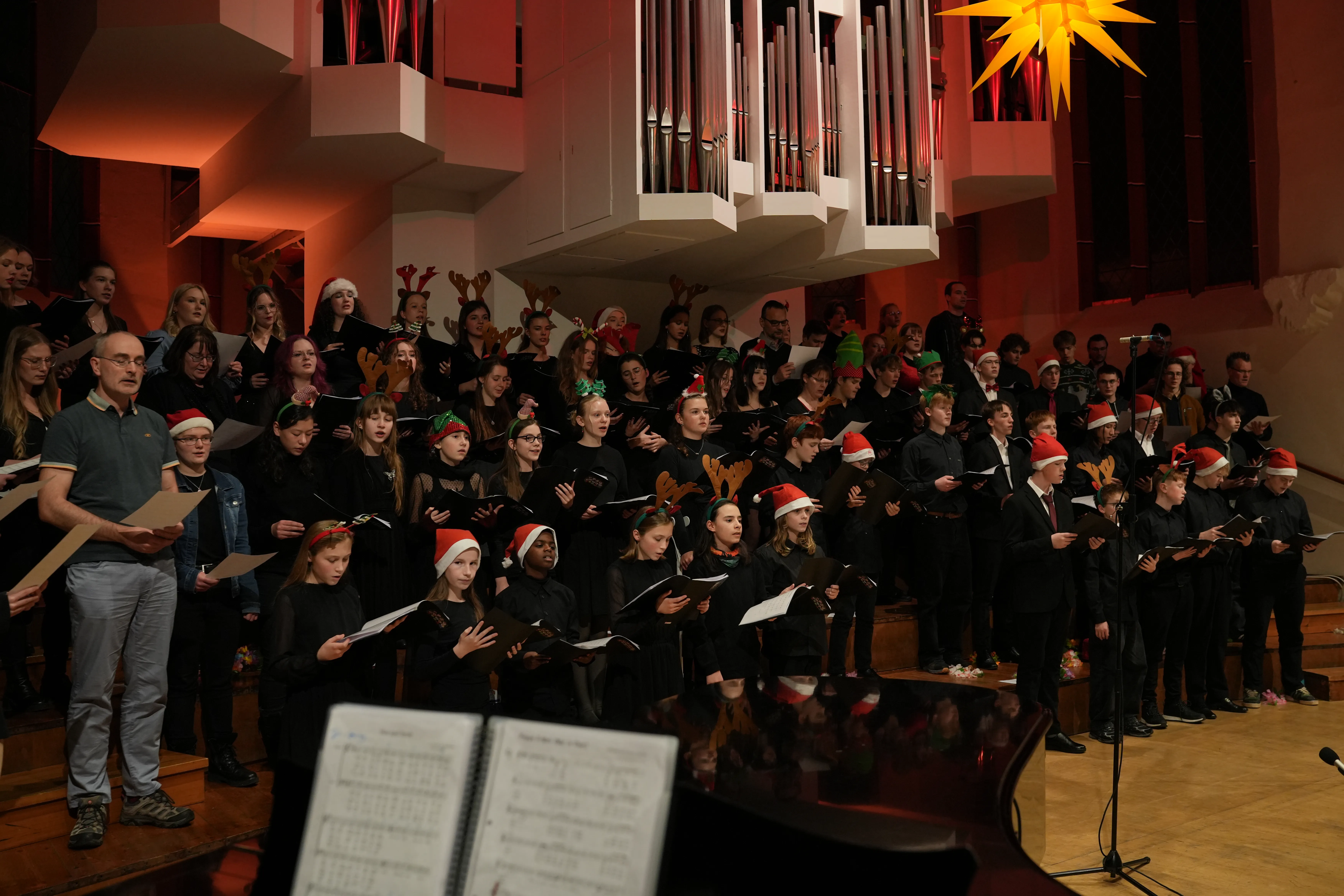 Am letzten Schultag vor den Weihnachtsferien fand wieder unser traditionelles Weihnachtssingen statt. Um 11 Uhr versammelten sich die Schülerinnen und Schüler, Lehrkräfte und weitere Angestellte der Schule in der 2. Etage zum Weihnachtssingen. Auch besuchten uns wieder einige Alumni, um dieses gemeinsame Erlebnis der Weihnachtszeit zu genießen. Großen Dank an unsere Musik-Lehrerinnen und -Lehrer für die Organisation.