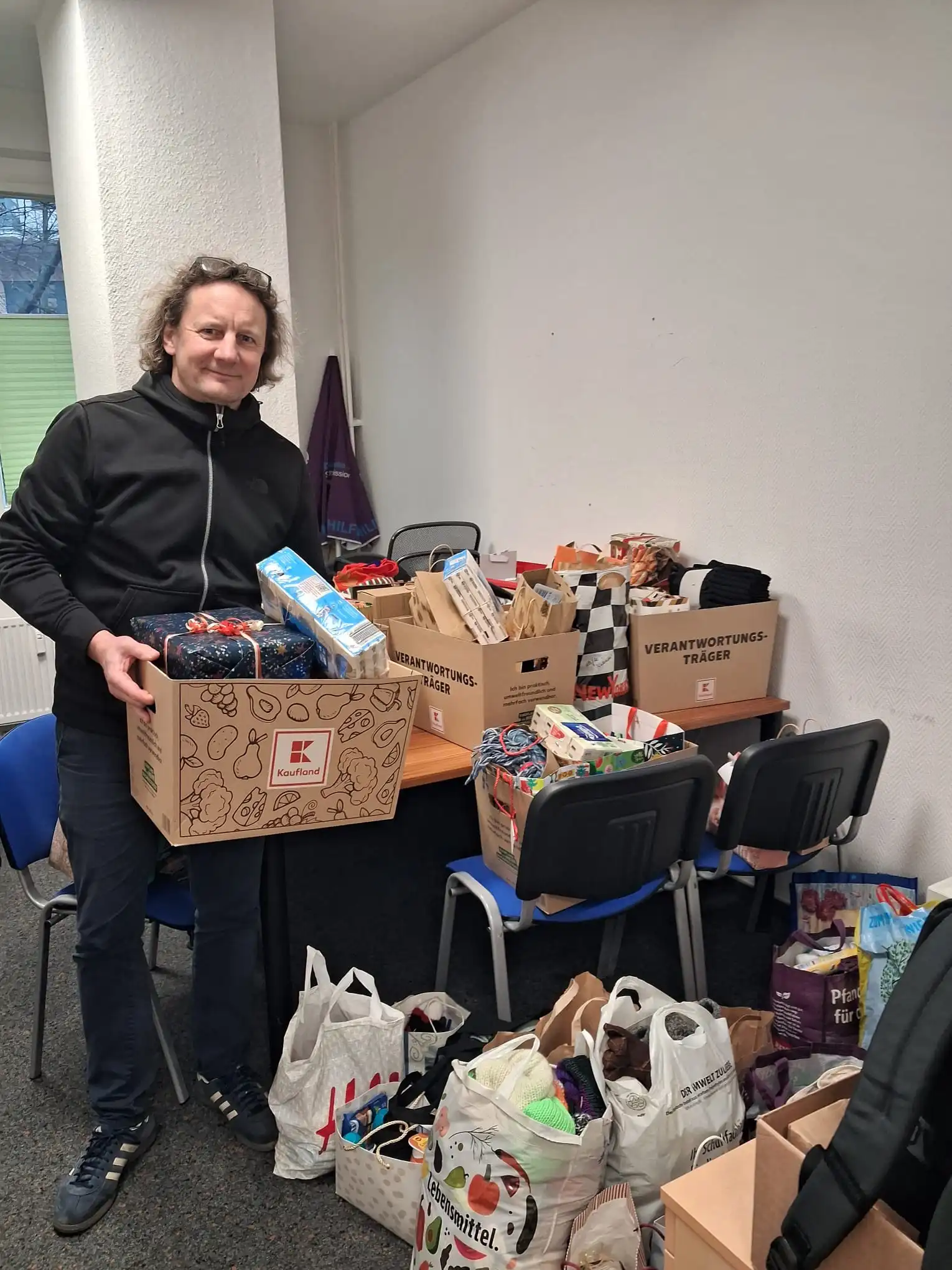 Herzlichen Dank an alle, die unsere Weihnachtsaktion 2025 unterstützt haben, auch im Namen von Herrn Wünsch, dem Leiter der Einrichtung. Wir konnten zahlreiche liebevoll ausgesuchte Geschenke für die Besucher der Weihnachtsfeier und viele Sachspenden, wie Socken, Schals, Spiele, Süßigkeiten usw. in die Wärmestube bringen. Es war die größte Sammlung seit Beginn der Weihnachtsaktion, nachdem bereits im letzten Jahr mit 70 Geschenken ein neuer Rekord aufgestellt worden war.